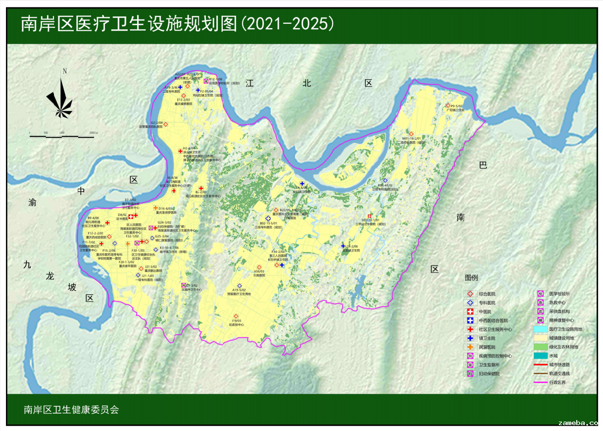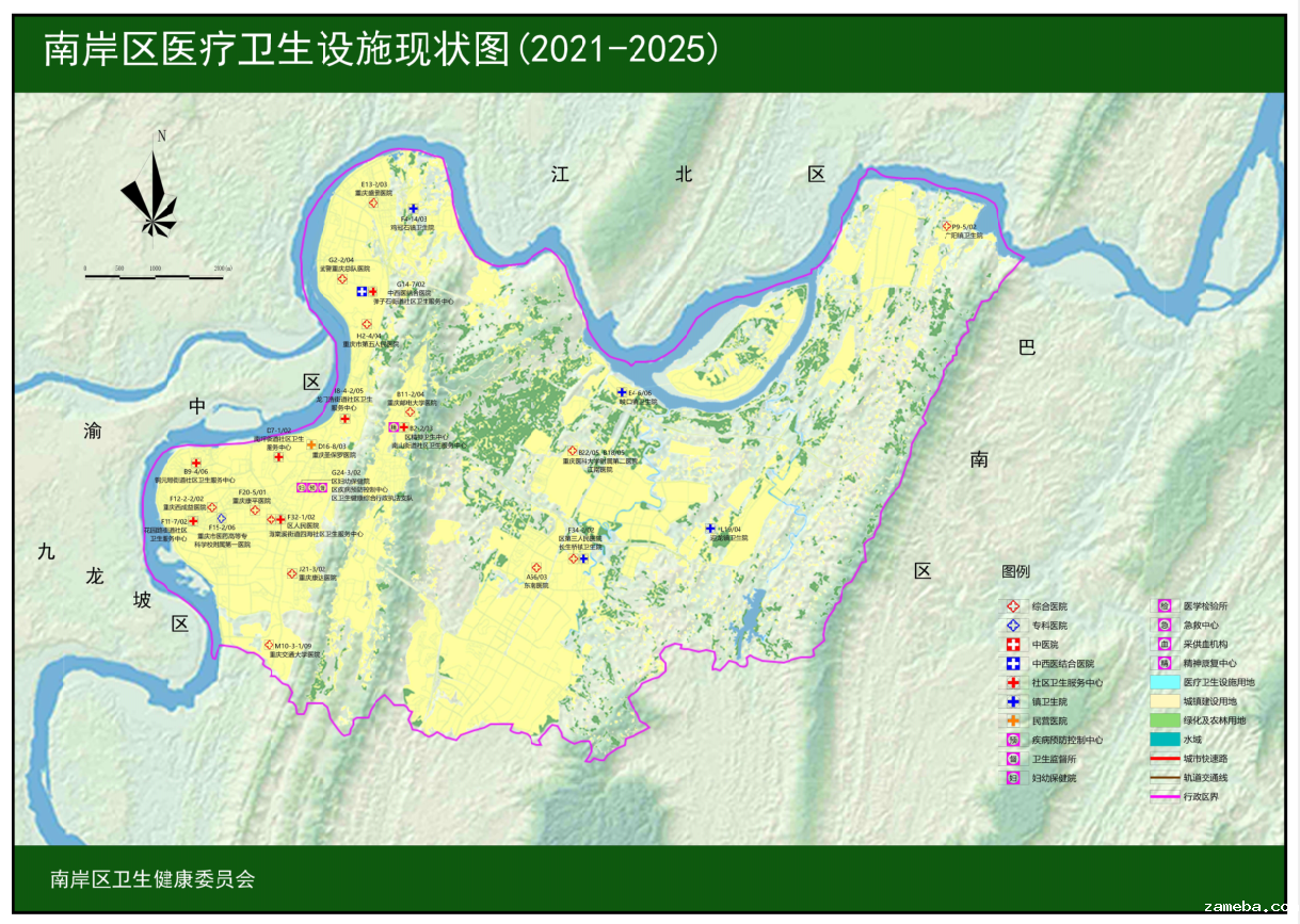 9.优化医疗卫生资源布局。加强全区综合医院、专科医院、公共卫生机构的基础设施建设。加速推进重庆市第五人民医院、南岸区中医院、南岸区精神卫生中心、南岸区疾病预防控制中心、南岸区妇幼保健院、南岸区中西医结合医院等建设项目。推动海棠溪街道社区卫生服务中心建设工程、龙门浩街道社区卫生服务中心迁建工程,启动南坪镇卫生院新建工程、鸡冠石镇卫生院迁建工程、涂山镇卫生院新建工程等。探索以共建、租赁、收购等方式整合现有医疗资源,推动“一街一中心、一镇一卫生院”落地。加快广阳湾片区4块医疗卫生用地项目建设,建设1家三甲中医院(南岸区中医院江南院区)、1家综合医院、2家专科医院,支持重庆市东南医院开展二期项目建设并建成三级甲等综合医院。