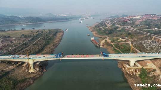 据了解,该钢箱梁从湖北武穴制造出厂并经过水运一路向西航行,途经葛洲坝、三峡大坝、丰都等地抵达施工现场。大桥合龙所需的钢箱梁使用焊接、拼接、配钻等工艺工法制造而成,耗时200天。