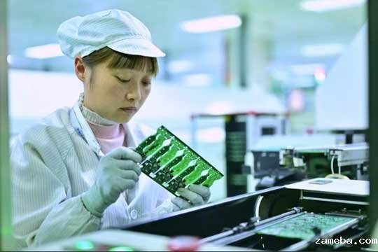 重庆盟讯电子科技有限公司移动端主板生产数字化车间,工作人员正在生产线上忙碌。