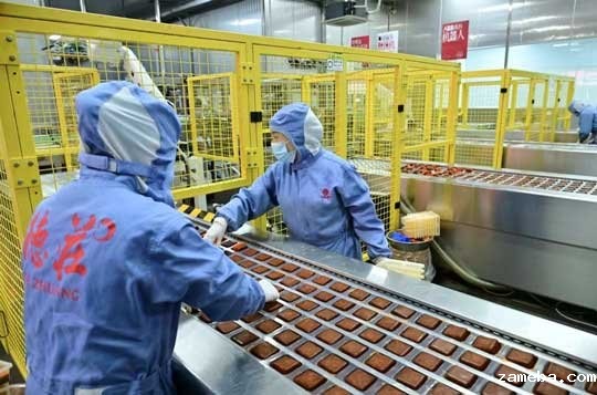 重庆德庄实业集团食品生产基地火锅底料车间,工作人员正在赶制订单。