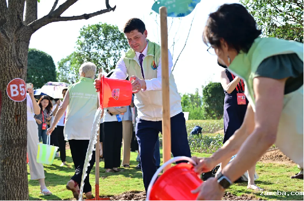 栽树、浇水……植树活动上,与会代表们共同种植着象征坚定的香樟树和象征友爱的桂花树,寓意正直和平、团圆美满,为推动城市绿色发展添美、添绿,向世界发出“发展、行动、团结”的强劲信号。